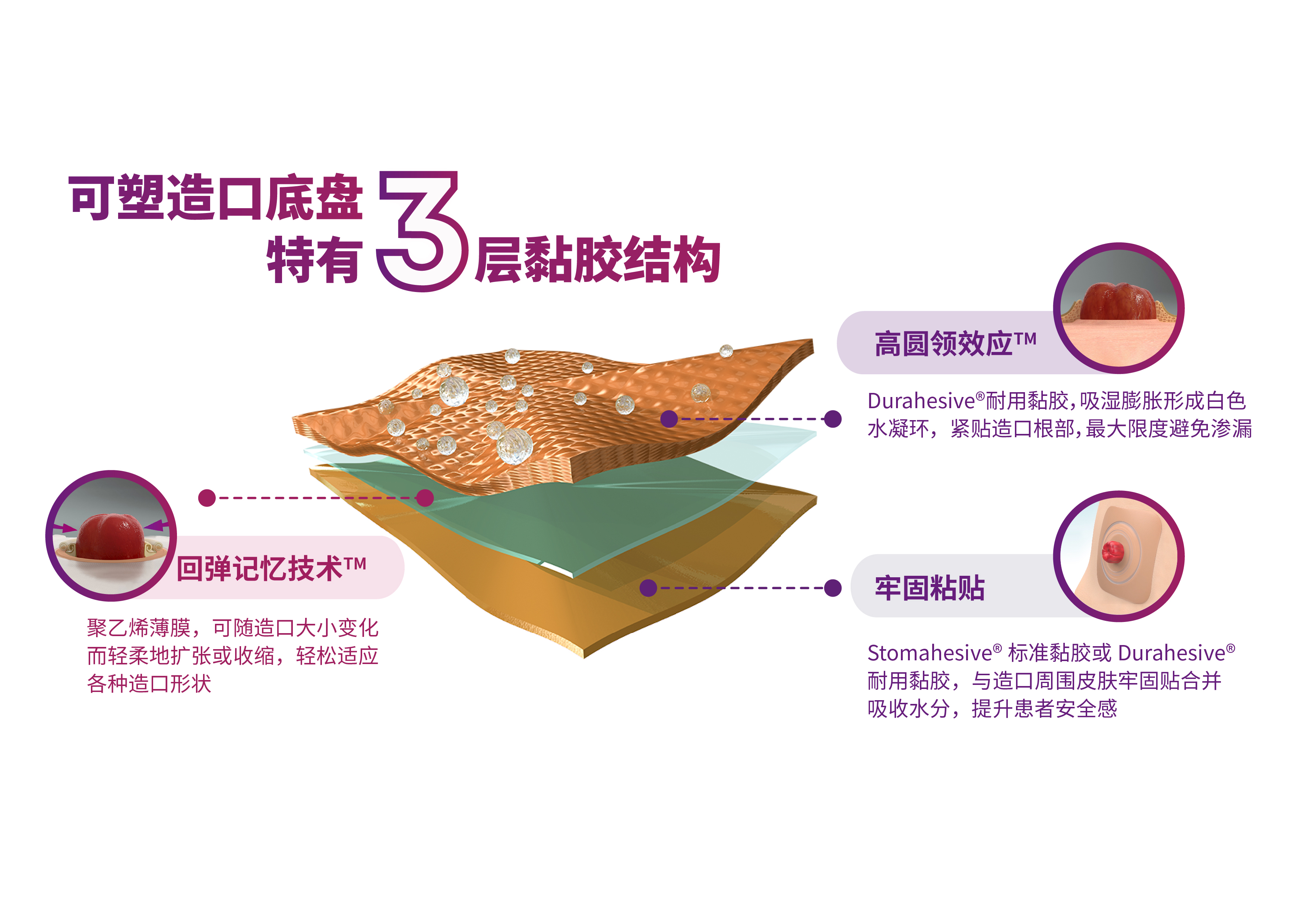 曾获美国专利的 Rebounding Memory Technology™ 每次都贴合您的造口,根据尺寸波动做出响应和回弹。